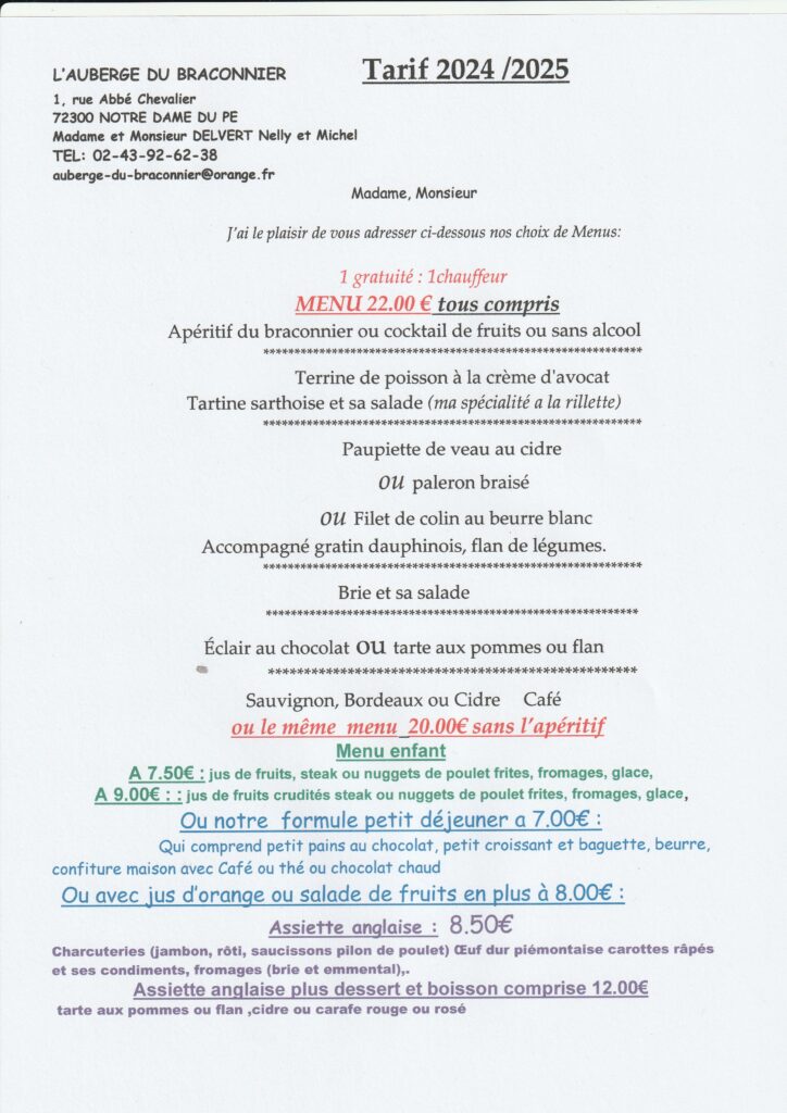 Pour toutes précisions ou demande particulière vous pouvez nous contacter : contact@aubergedubraconnier.fr ou