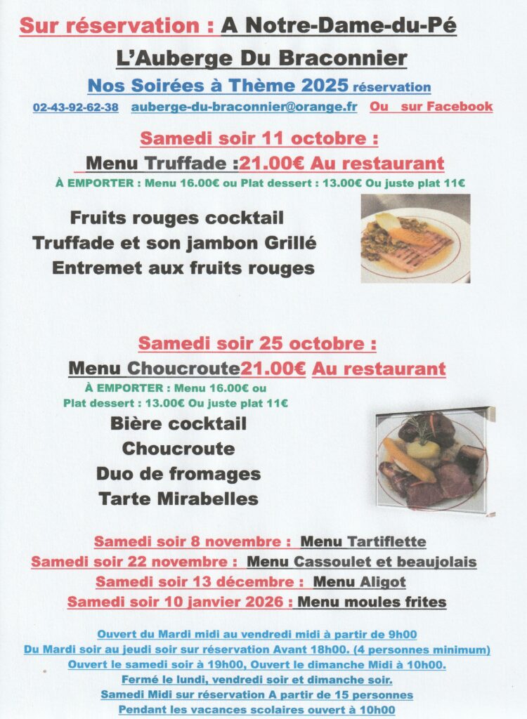 Dépôt de pains, Cigarettes journaux les Nouvelles de Sablé Sur Réservation De 12h00 à 13h30.
